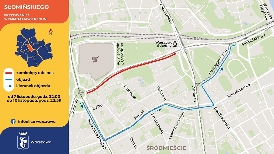 Objazd poprowadzi ulicą Okopową i aleją Jana Pawła II, do ulic Stawki i Andersa.