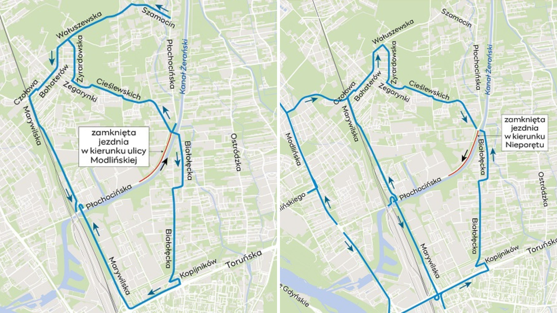 Nowy asfalt pojawi się na dwujezdniowym odcinku pomiędzy ulicą Cieślewskich a zawrotką przed przystankiem autobusowym Zaplecze. Od piątku, 7 listopada, od godz. 22 drogowcy będą pracowali na nitce w stronę Modlińskiej. Te prace potrwają do wtorku, do godz. 4.