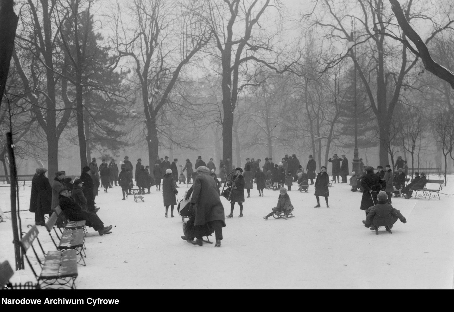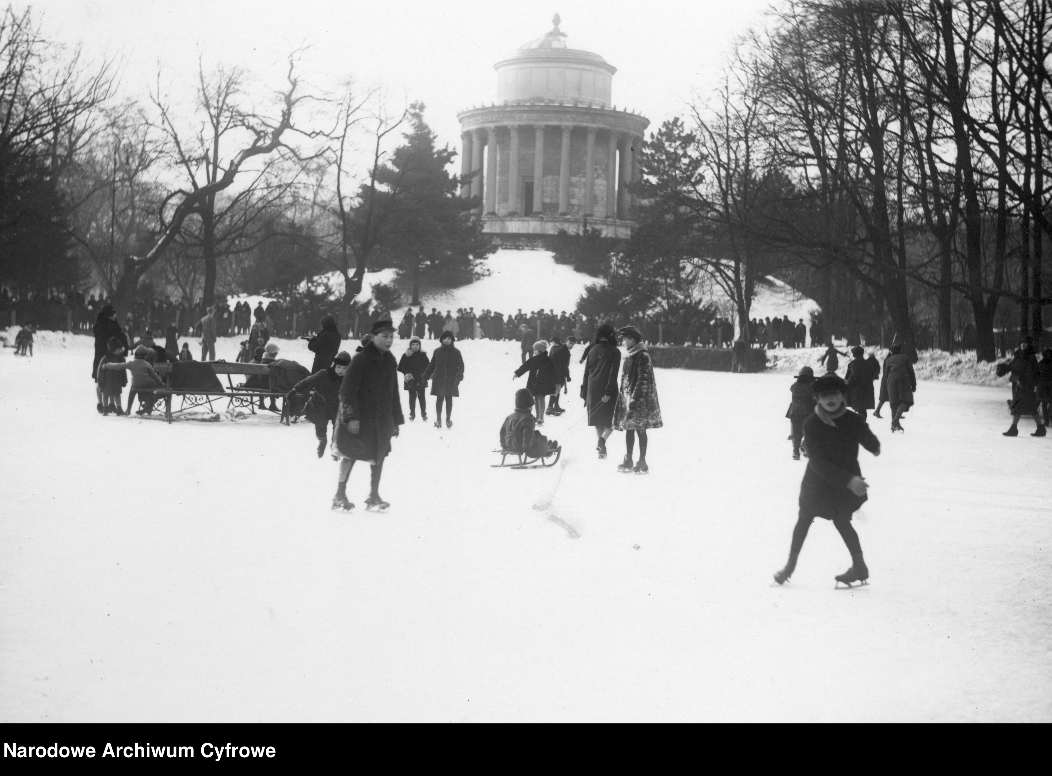 Zimą Ogród Saski zmieniał swoje oblicze, stając się jedną z najważniejszych przestrzeni rekreacyjnych Warszawy. Gdy opadały liście, a alejki pokrywał śnieg, park nie zapadał w sen, tętnił życiem i przyciągał mieszkańców spragnionych ruchu, rozrywki i spotkań towarzyskich. Zimowa pora w Ogrodzie Saskim była czasem, w którym natura, miejska codzienność i rozrywka splatały się w charakterystyczny dla epoki sposób.